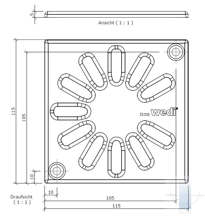 Fundo 1.1 noteces reste 115x115x5 mm, Nerūsējošais tērauds