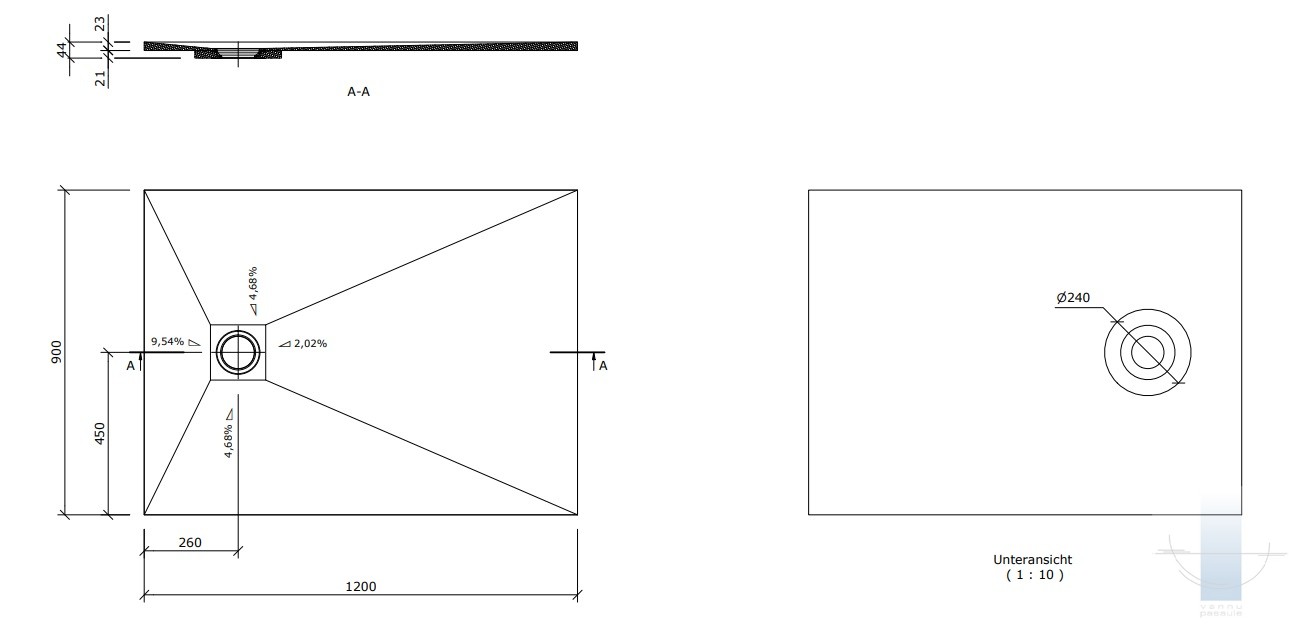 Ar ūdensizturīgu XPS kodolu, integrētu kritumu un vienkāršu montāžu tas ir piemērots dažādām virsmām, piemēram, flīzēm, dabīgajam akmenim vai Fundo Top dizaina virsmām.