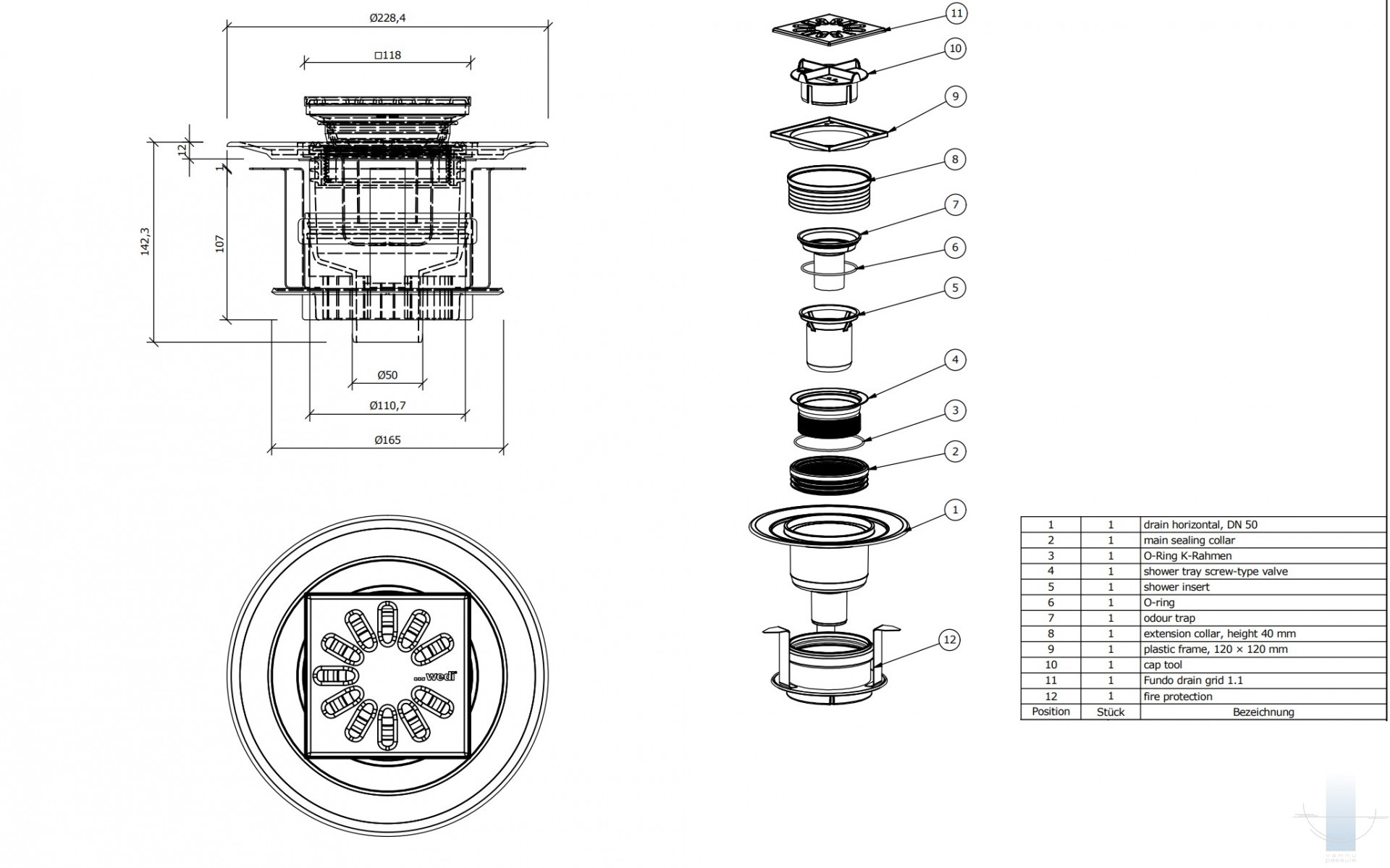 wedi piedāvā dry-fit vertikālā novadīšanas tipa tehnoloģiju grīdas līmenī iebūvējamiem dušas elementiem, kurus raksturo zems uzstādīšanas augstums un piemērotība gan jaunbūvēm, gan renovācijām. DN 50 un DN 70 varianti ir pieejami ar dažādiem vākiem un ugunsdrošības risinājumiem, un tos var kombinēt ar Fundo sērijām Primo, Borgo, Trollo, Nautilo un Ligno.”