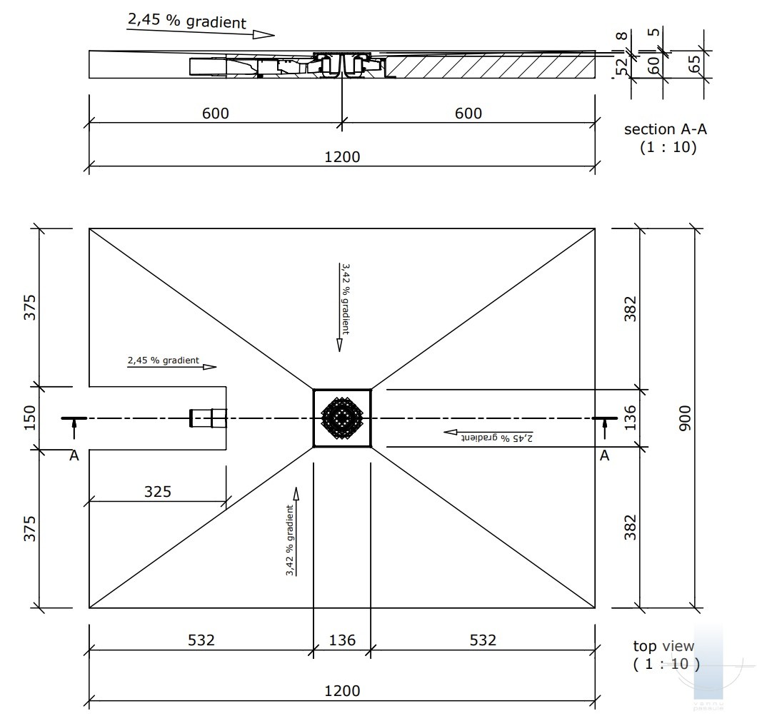 wedi Fundo Plano® ir izcils grīdas elements ar biezumu tikai 65 mm un iebūvētu kritumu no 65 līdz 52 mm pie noteces. Pateicoties kompaktajam dizainam un integrētajai DN 40 noteces sistēmai, šī grīdas sistēma ir nevainojama izvēle mitro telpu renovācijai, īpaši uz vecām betona konstrukcijām.