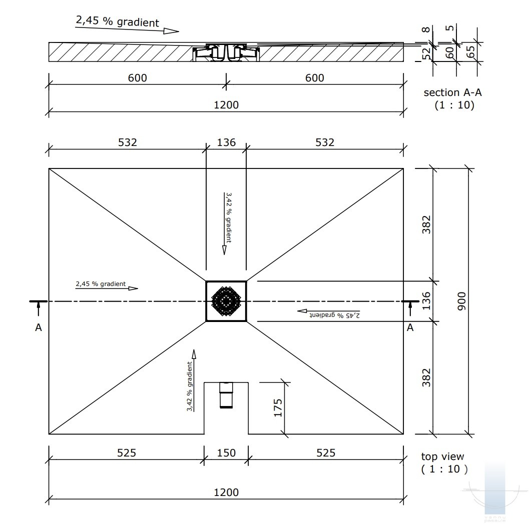 Fundo Plano komplekts ar izvadu centrā 120x90 cm DN40