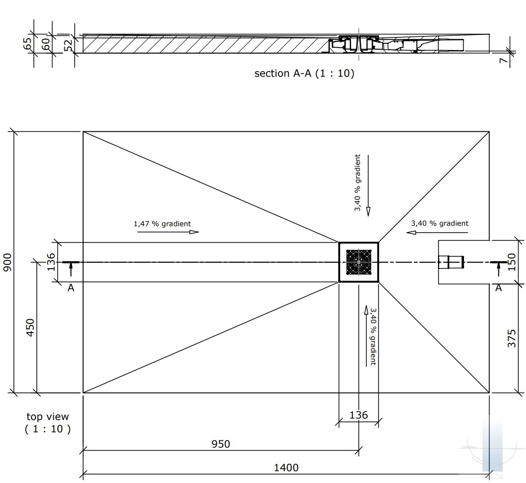 Fundo Plano komplekts ar novirzītu izvadu 140x90 cm DN40