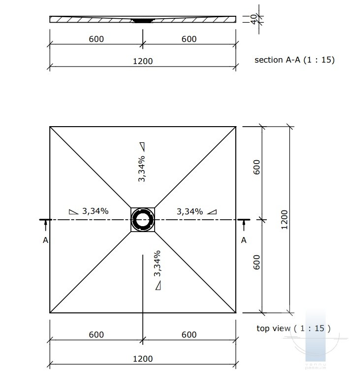 Fundo Primo dušas elements ar izvadu centrā 120x120 cm