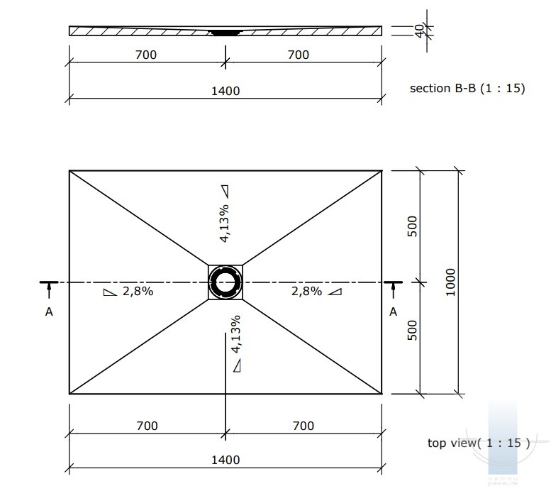 Fundo Primo dušas elements ar izvadu centrā 140x100 cm