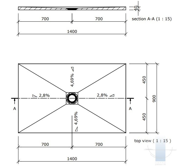 Fundo Primo dušas elements ar izvadu centrā 140x90 cm