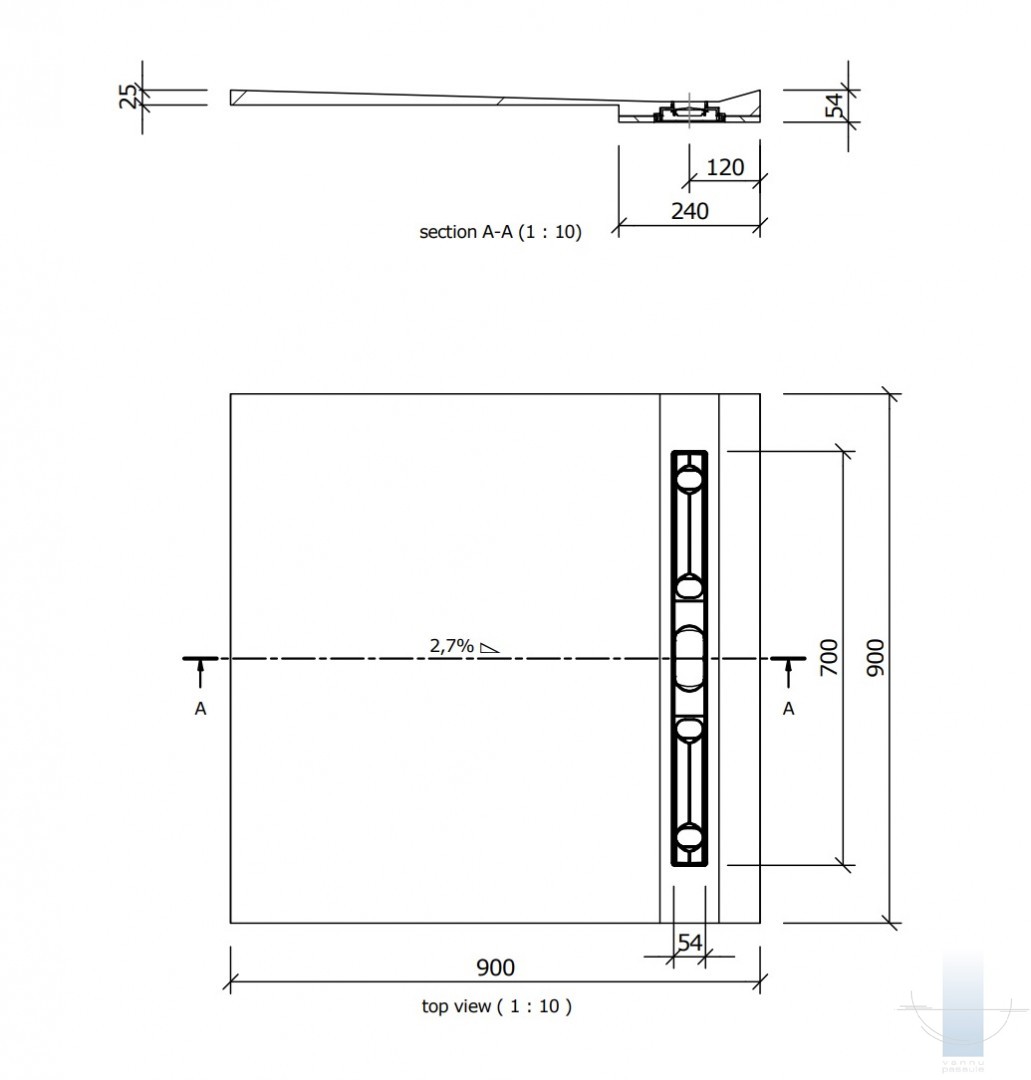 Fundo kanāla trapa vertikālais izvads, DN 50 – 54 mm