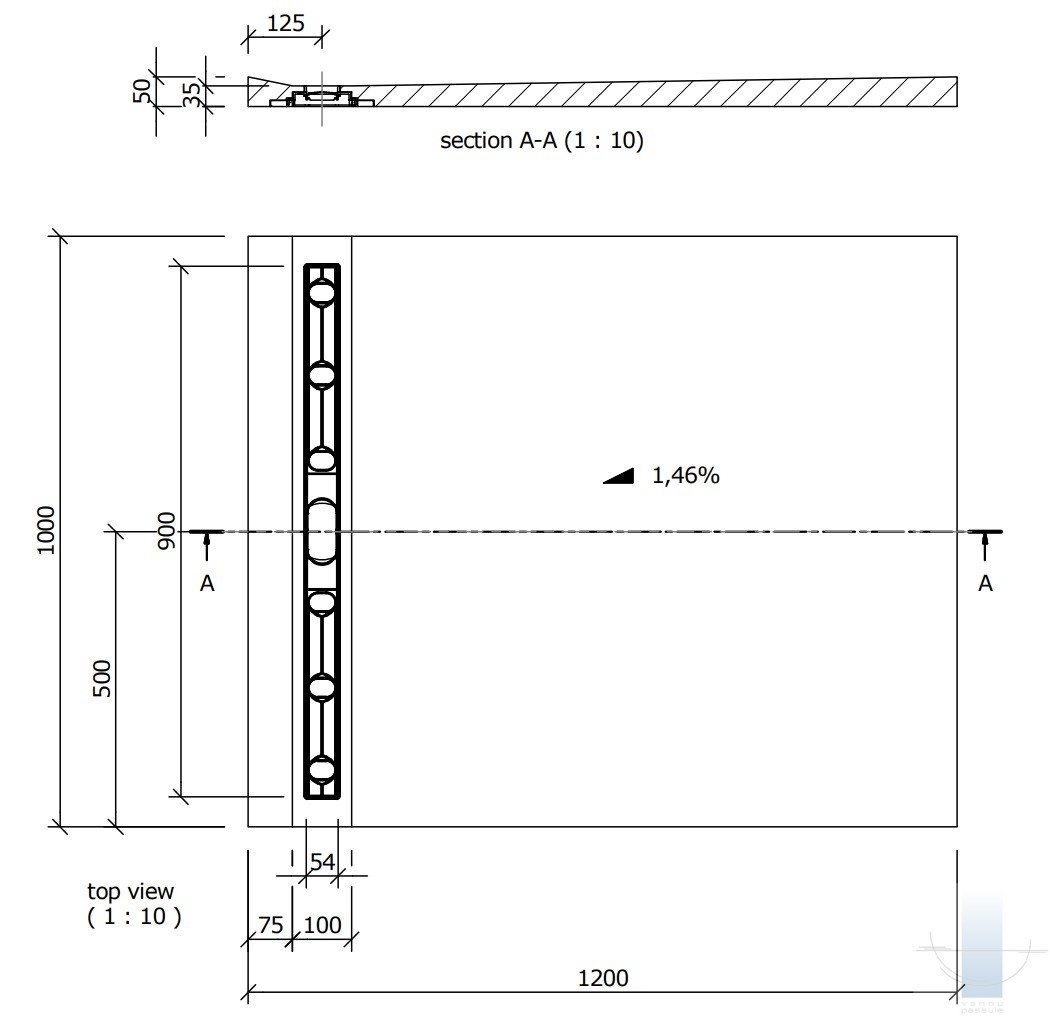 Fundo Riolito 120x100 cm, ar kanālu no sienas 900 mm