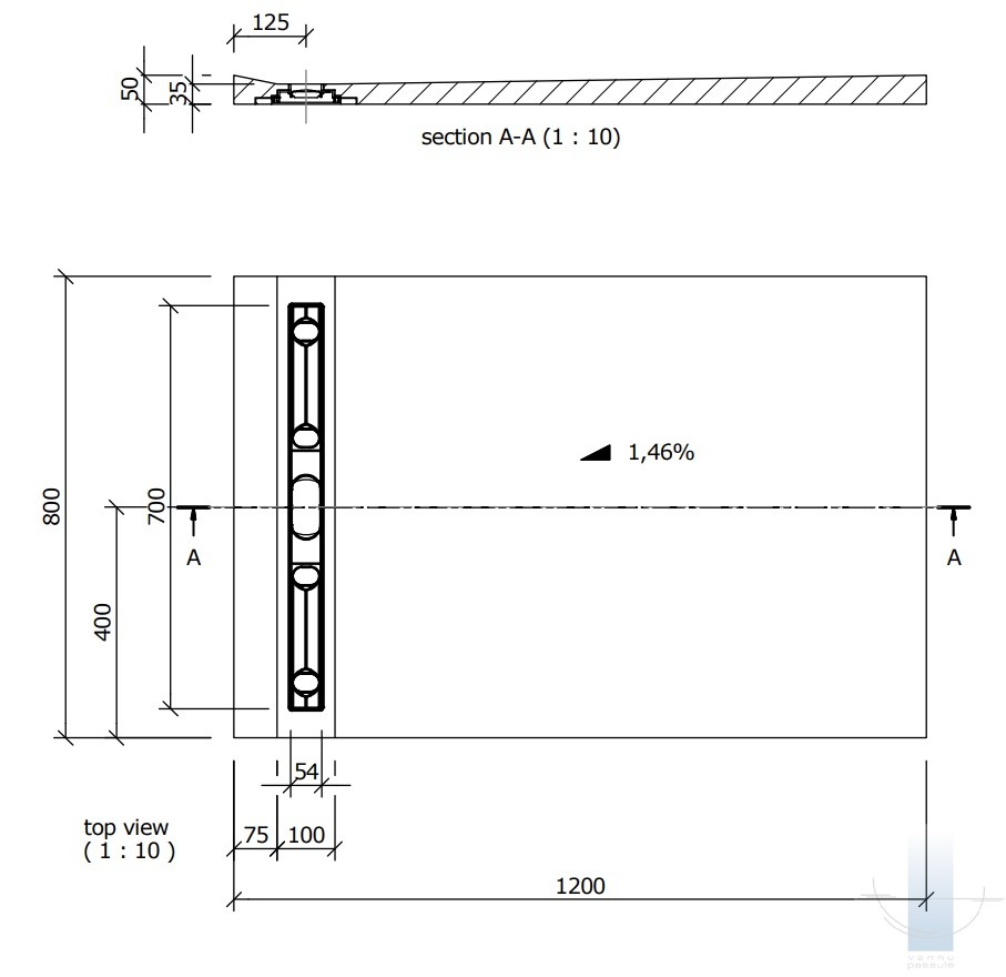 Fundo Riolito 120x80 cm, ar kanālu no sienas 700 mm