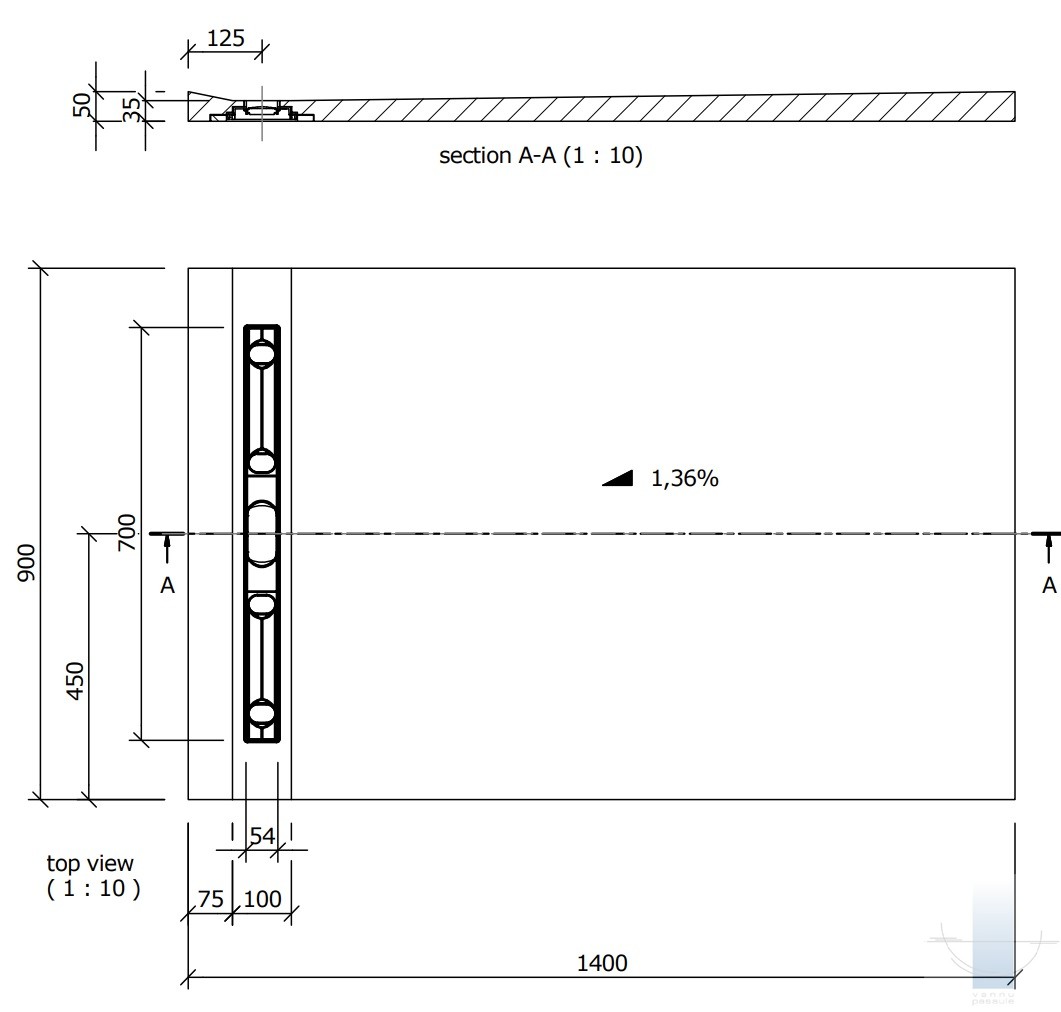 Fundo Riolito 140x90 cm, ar kanālu no sienas 700 mm