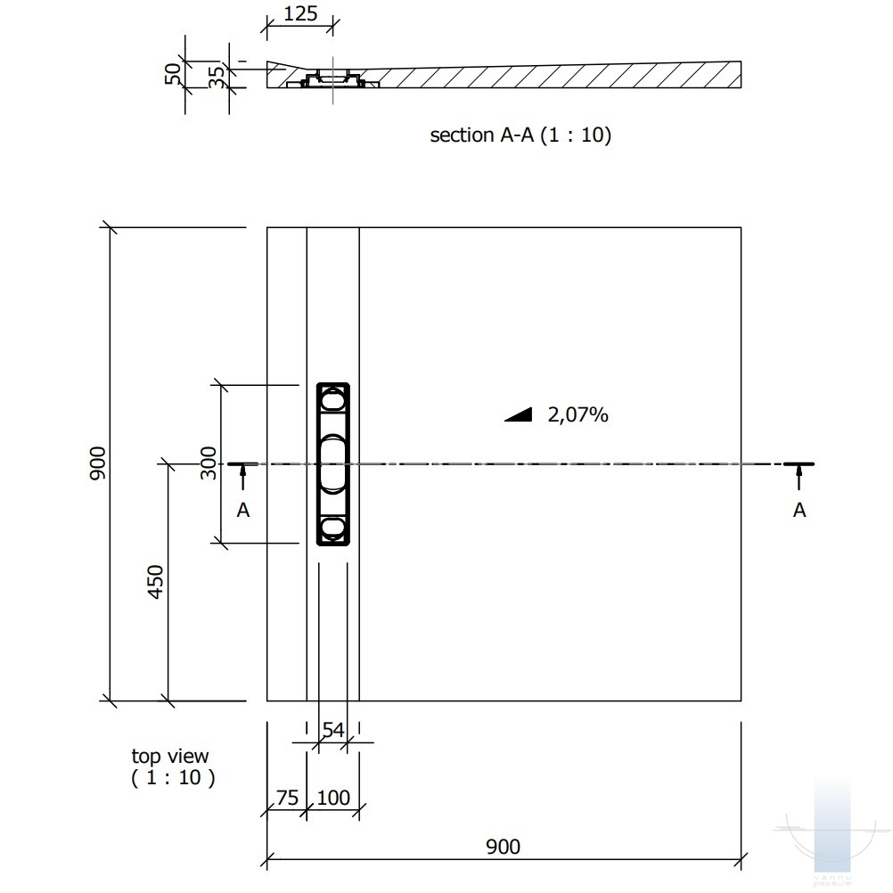 Fundo Riolito 90x90 cm, ar kanālu no sienas 300 mm