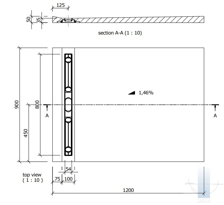 Wendi Fundo Riolito Neo 120x90 cm, ar kanālu pie sienas 800 mm