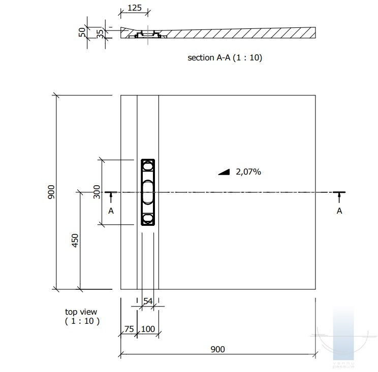 Wendi Fundo Riolito Neo 90x90 cm, ar kanālu pie sienas 300 mm