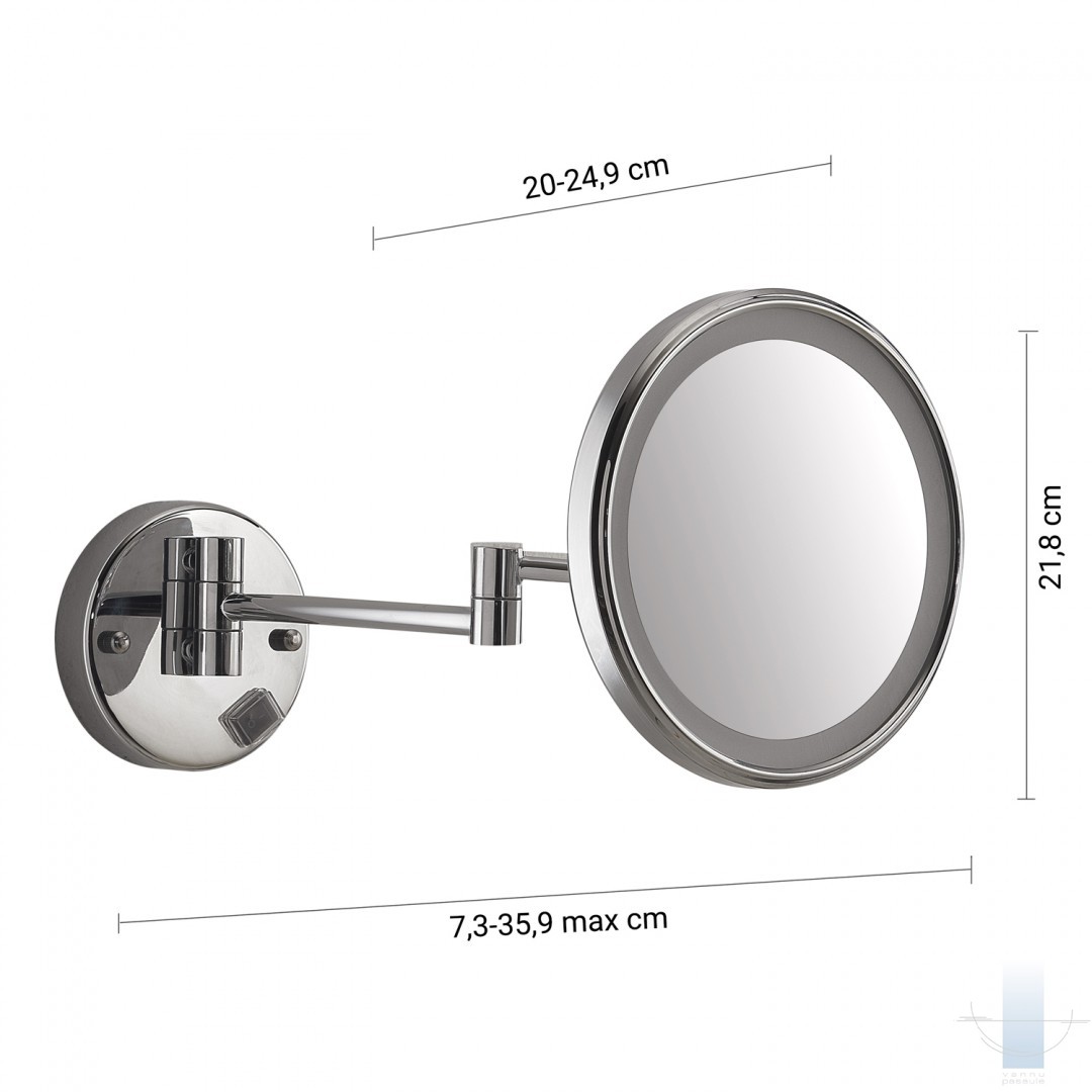 Sienas palielinošais spogulis ar LED apgaismojumu. Palielinājuma faktors 5x. Produkta priekšrocība: izvelkams balsts. IP44 – 5 W – 220–230 V – 50–60 Hz – 6500 K°