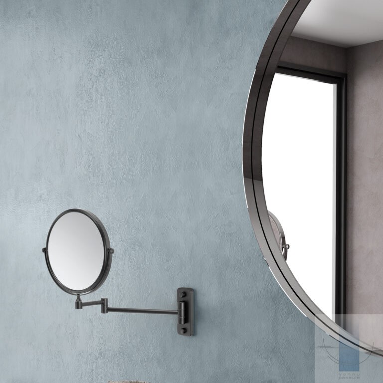 Elegants, matēti melns spogulis ar praktisku palielinājumu un pielāgojamu leņķi — ideāls risinājums ikdienas kosmētikai vai sejas kopšanai. Sienas stiprinājums ietaupa vietu un piešķir vannas istabai vai guļamistabai modernu stila akcentu. Iegādājieties kvalitatīvu un funkcionālu aksesuāru, kas palīdzēs piepildīt ikdienas ritualus ar komfortu un ērtībām.