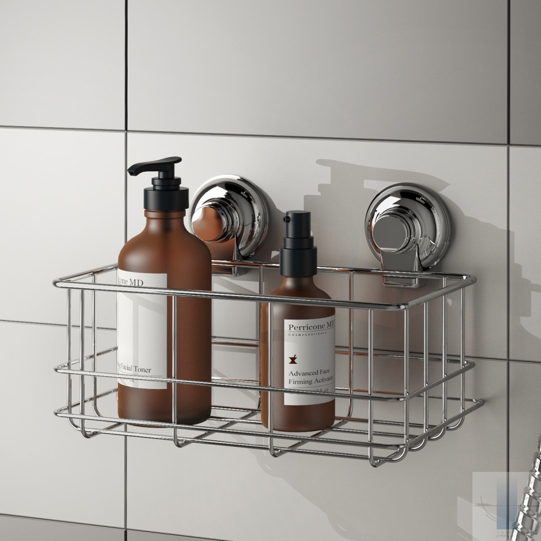 Taisnstūra dušas plauktiņš no hromēta stieņa montāžai ar piesūcekņiem.