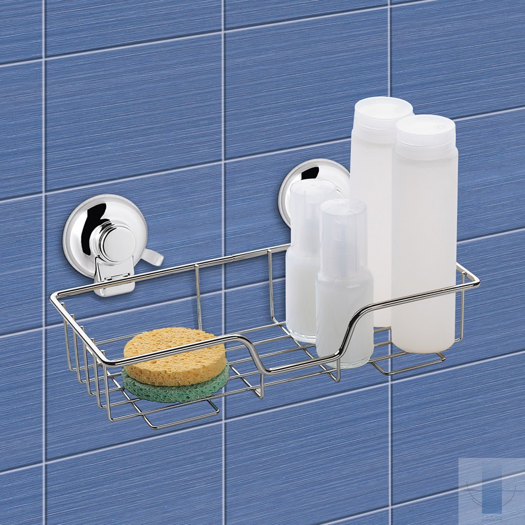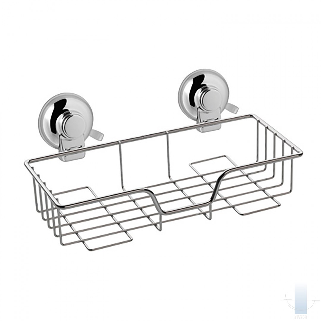 Taisnstūra dušas plauktiņš no metāla stieņa montāžai ar piesūcekņiem.