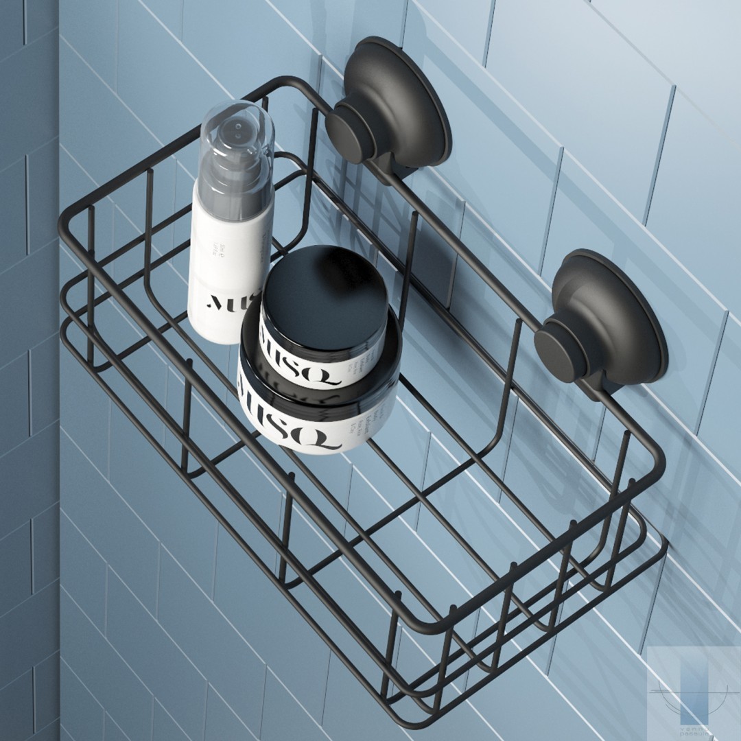 Taisnstūra dušas plauktiņš no metāla stieņa montāžai ar piesūcekņiem.