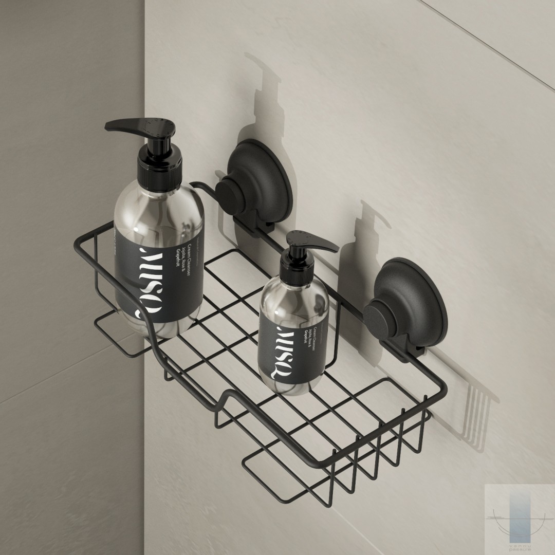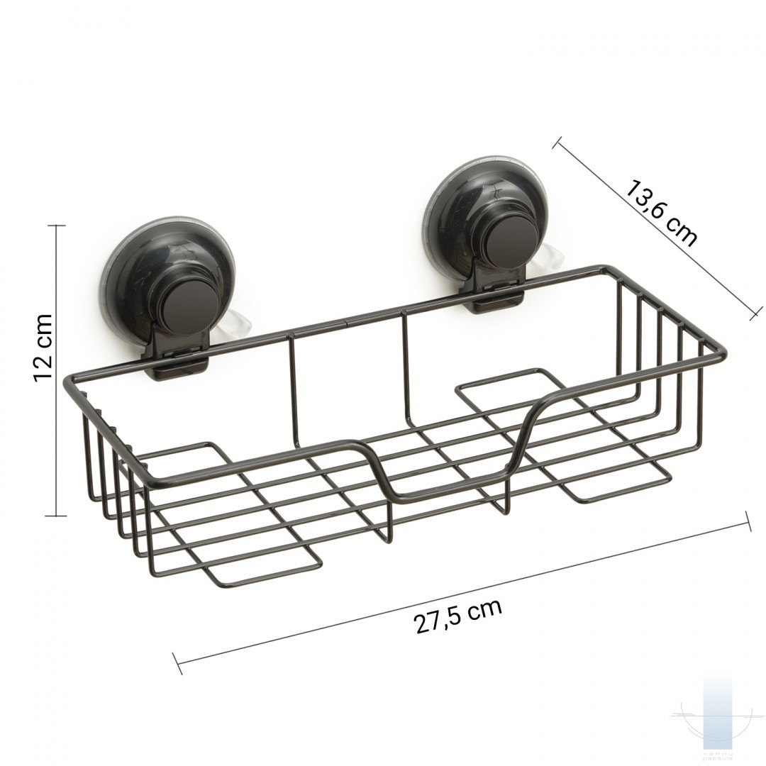 Taisnstūra dušas plauktiņš no metāla stieņa montāžai ar piesūcekņiem.