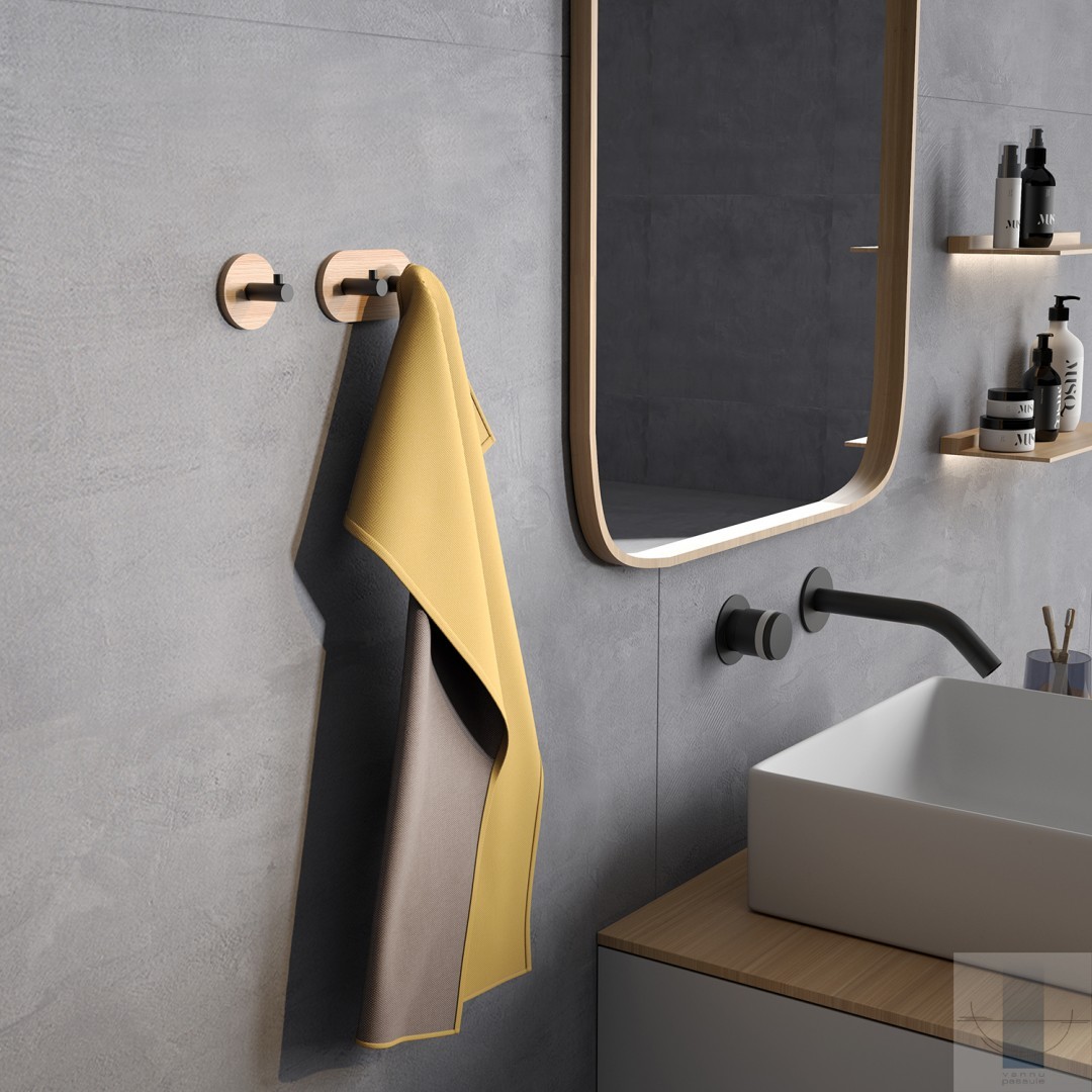 Gedy Juncos apaļš dvieļu āķis, Bambuss/Melns matēts