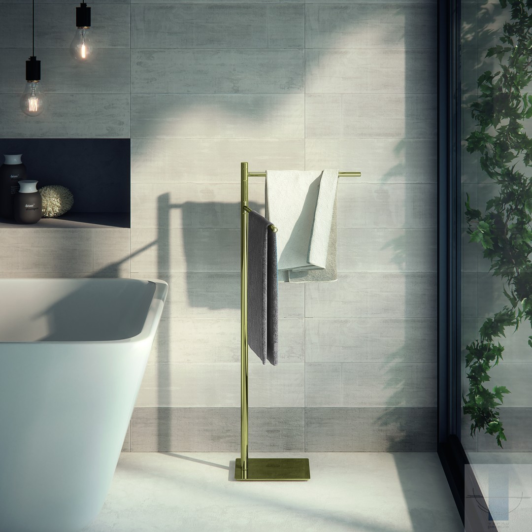 Gedy TR31-38 – elegants un funkcionāls brīvi stāvošs dvieļu statīvs ar modernu matētu zelta pārklājumu. Tā stabilā konstrukcija un divi dvieļu turētāji nodrošina ērtu un pārskatāmu dvieļu izvietojumu, vienlaikus piešķirot vannasistabai sakoptu un stilīgu izskatu. Kompaktais dizains lieliski iederas gan lielās, gan mazākās telpās, piedāvājot praktisku un estētisku risinājumu ikdienai.