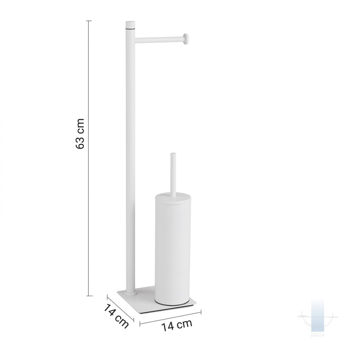 Gedy Trilly TR32 ir kompakts un elegantā stila brīvi stāvošs statīvs, kas apvieno divas būtiskas vannas istabas funkcijas vienā — papīra ruļļa turētāju un tualetes birstes turētāju. Matēti baltais pārklājums piešķir telpai tīru, moderno un sakoptu izskatu