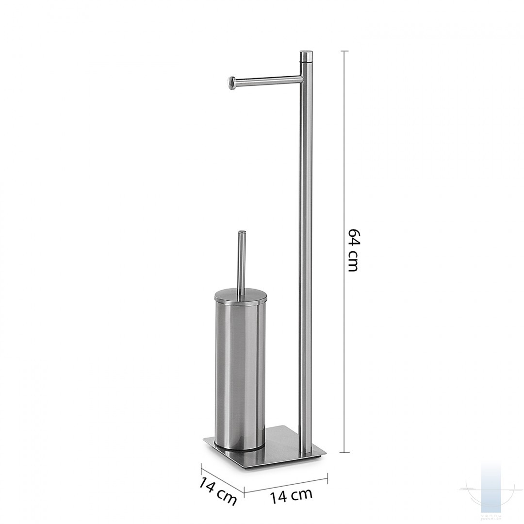 Brīvi stāvošs dvieļu, tualetes papīra un WC birstes turētājs ar pamatni no sveķiem un smiltīm. WC birste ar melnu saru ieliktni un izņemamu iekšējo trauku, kas nodrošina vieglu tīrīšanu.