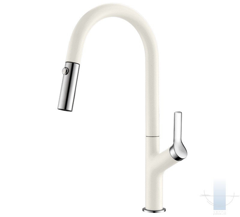 Maisītājs ir aprīkots ar izvelkamu izteku, kas ļauj ērti sasniegt visus virtuves izlietnes stūrus. Pateicoties 360° rotācijai, tas nodrošina elastību dažādām tīrīšanas vajadzībām. Papildu funkcija — aeraators Neoperl®, kas palīdz samazināt ūdens patēriņu.