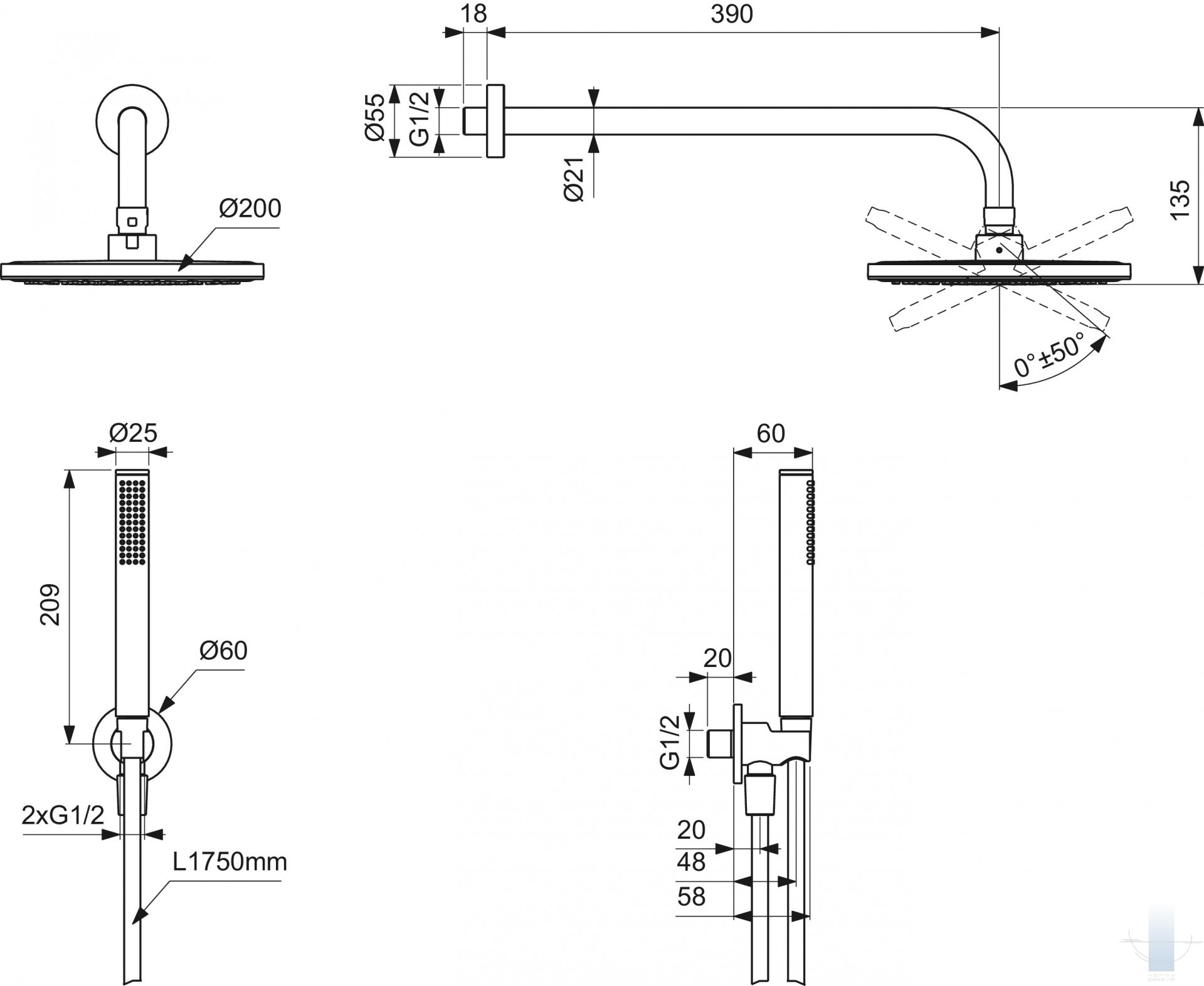 Ideal Standard - Idealrain dušas galvas Ø200 un rokas dušas komplekts, Melns matēts