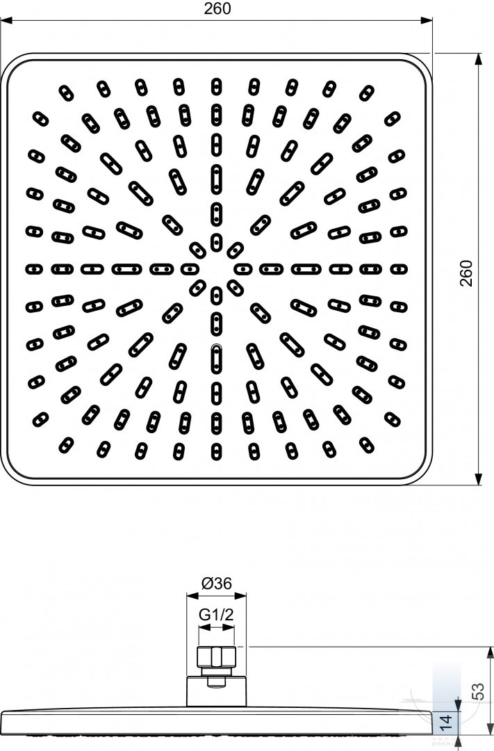 Ideal Standard Idealrain dušas galva 260x260 mm, Chrome