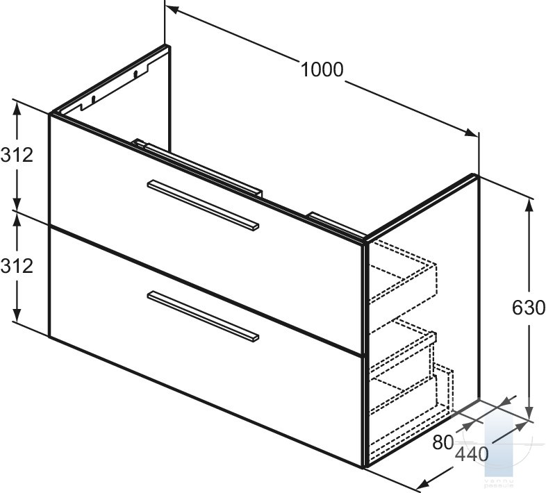 Ideal Standard i.Life A mēbele zem izlietnes, 100 cm (1000 x 440 x 630), 2 atviknes, Soft-Close funkcija