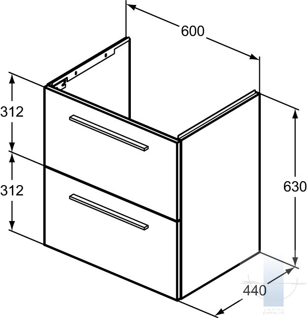 Ideal Standard i.Life A mēbele zem izlietnes, 60 cm (600 x 440 x 630), 2 atviknes, Soft-Close funkcija