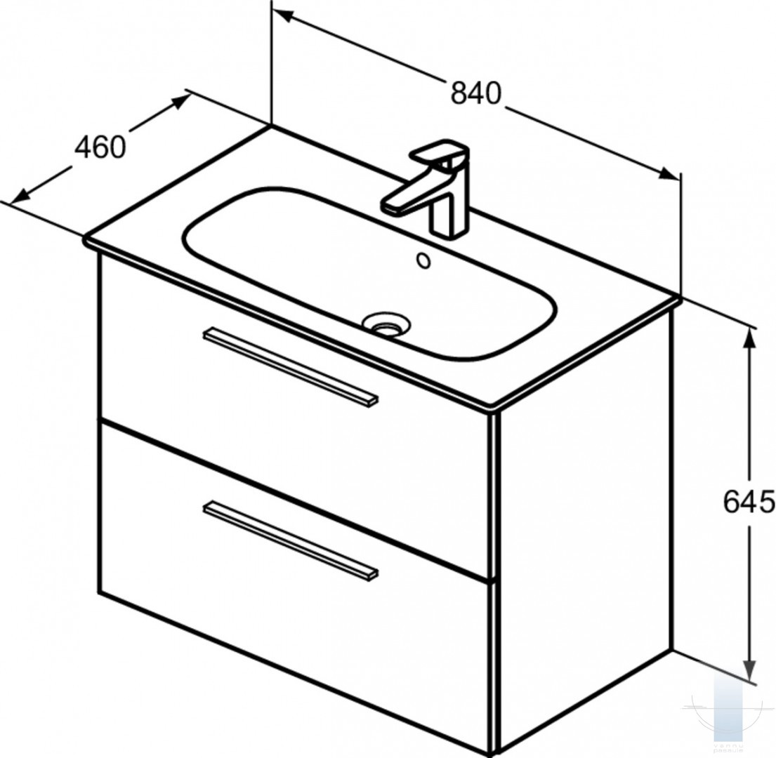 Ideal Standard i.life A izlietne mēbelei, 84 cm (840 x 460 x 155), ar caurumu maisītājam un pārplūdi, balta keramika