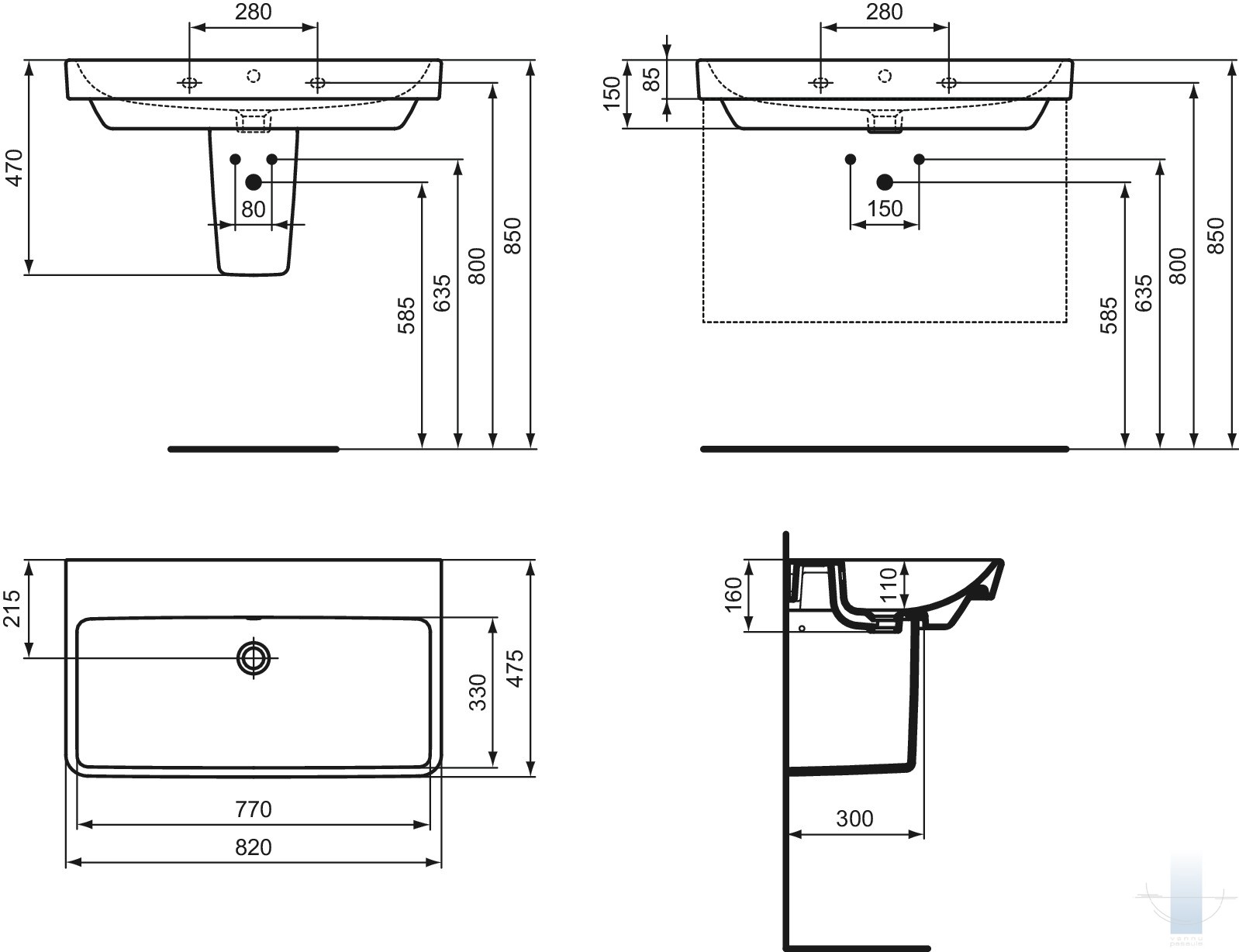 Izlietnes skapīši 80 cm: T5256 & T5274, puskolonna T471301 vai atsevišķi ar sifonu