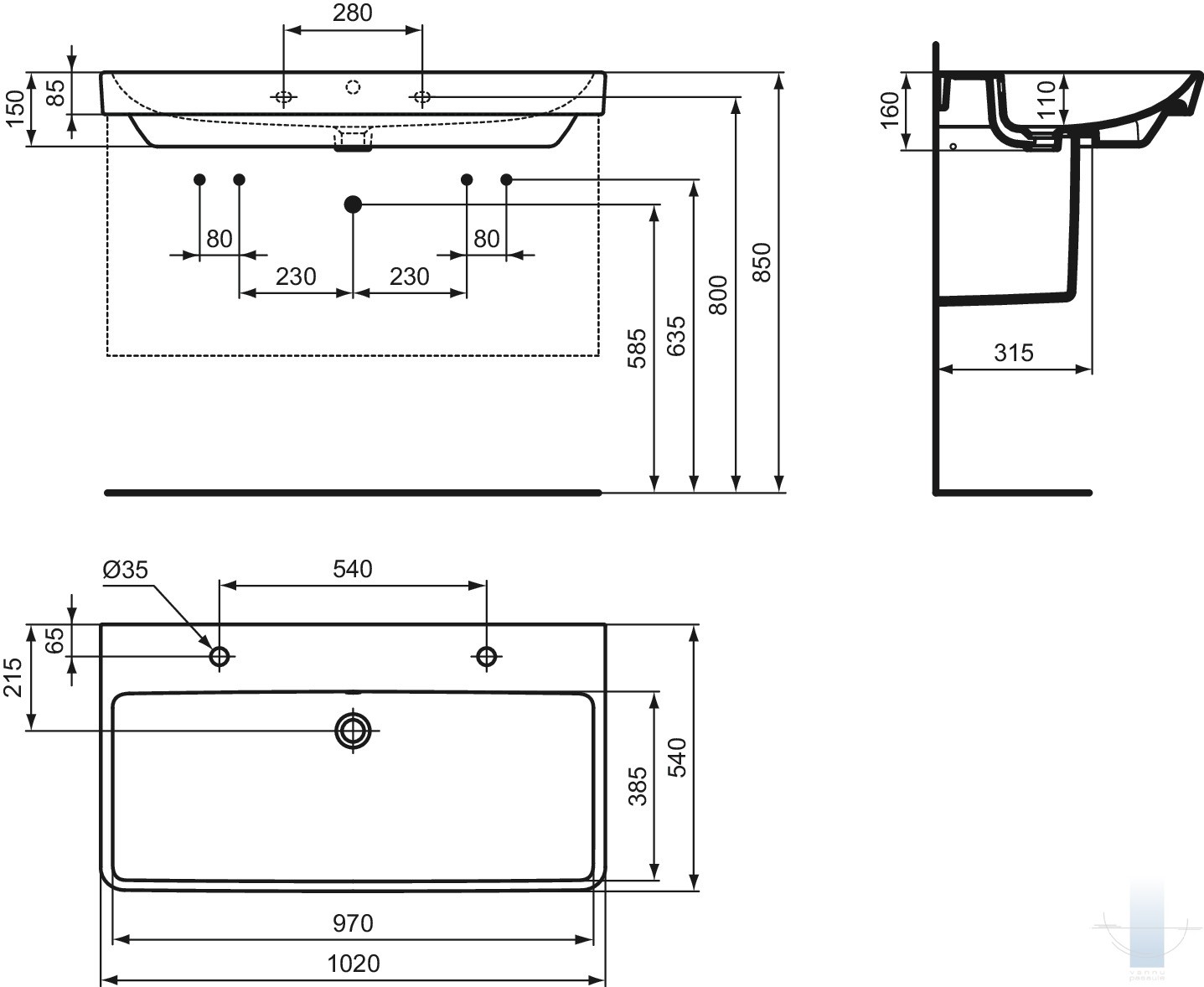 Ideal Standard - I.Life.B izlietne ar pārplūdes/maisītāja caurumu 102 cm, Balta