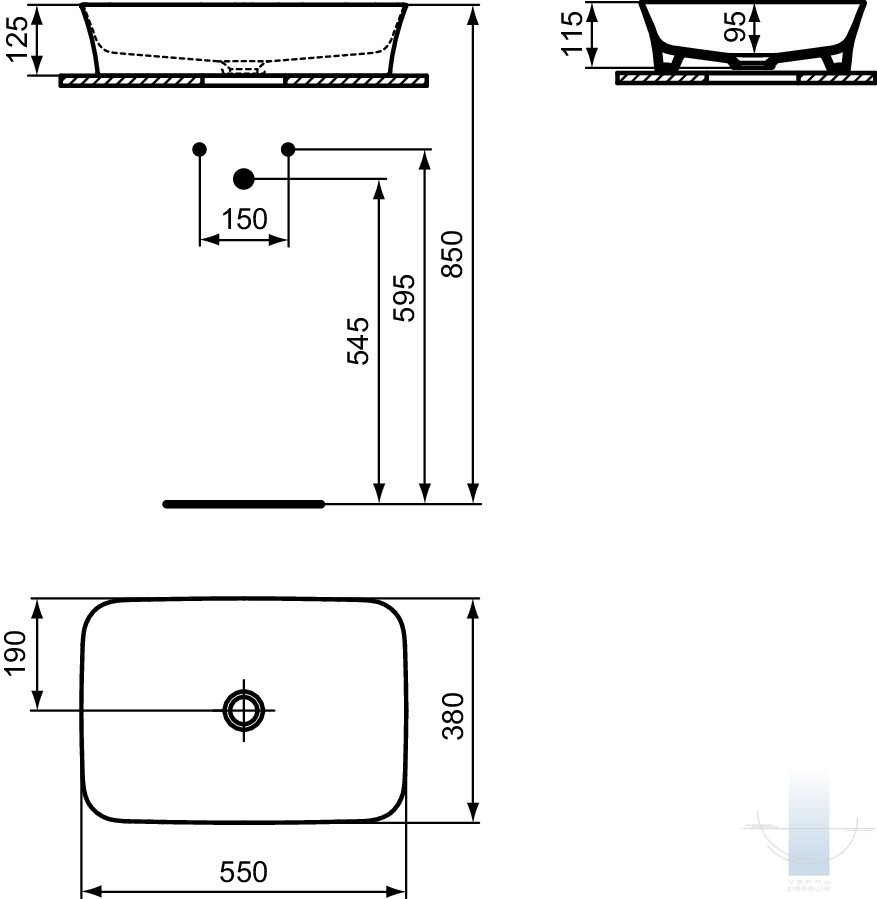 Ideal Standard - Ipalyss izlietne bez pārplūdes cauruma 55 cm, Powder
