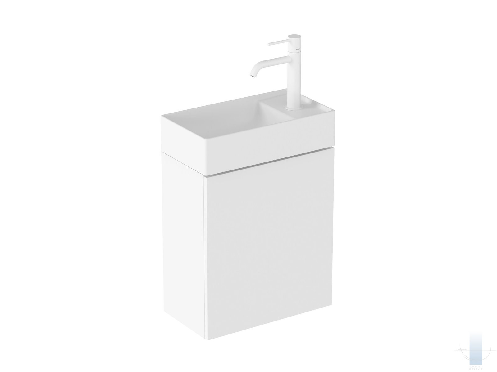 Keramiskā izlietne Veda ar kompakto tāda paša nosaukuma skapīti rada praktisku vienību, kas nodrošina roku higiēnu tualetes telpās un īpaši mazās vannas istabās. Izlietne ir pagriežama, tāpēc to var uzstādīt ar brīvi stāvošu jaucējkrānu gan labajā, gan kreisajā pusē.
