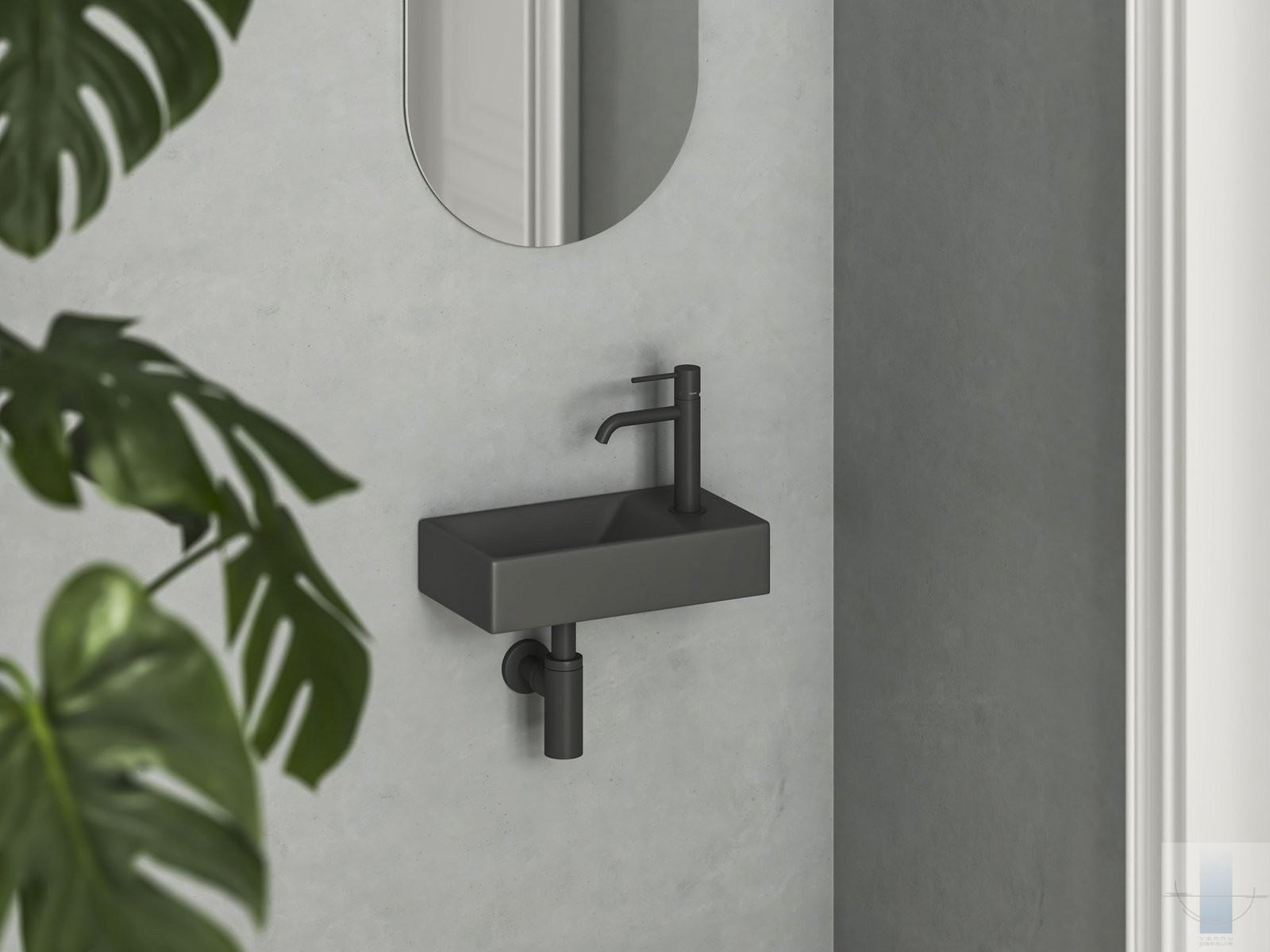 Izlietne Veda Wall 40 , ar jaucējkrāna caurumu, bez pārplūdes atveres, antracīts