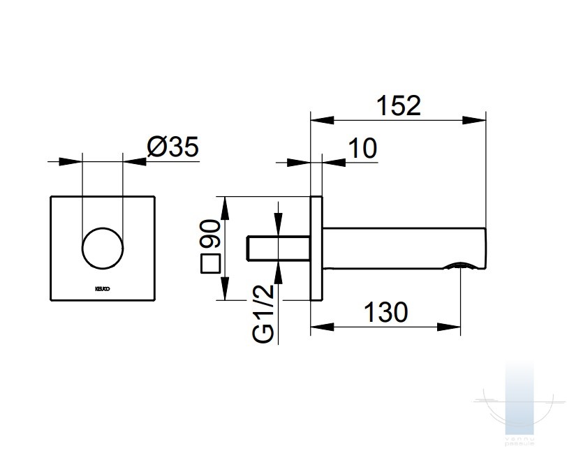 KEUCO IXMO Square vannas izteces snīpis 130 mm, Hroms