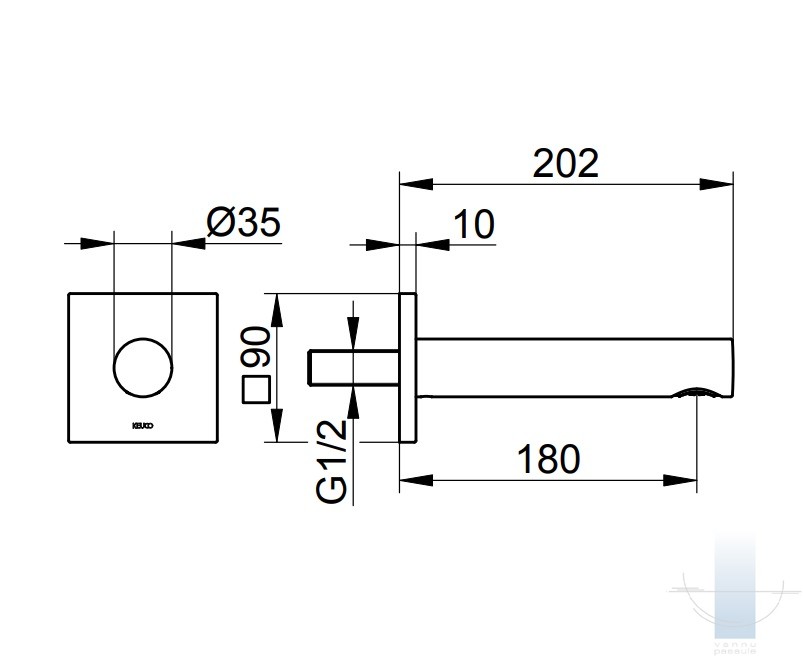 KEUCO IXMO Square vannas izteces snīpis 180 mm, Melns matēts