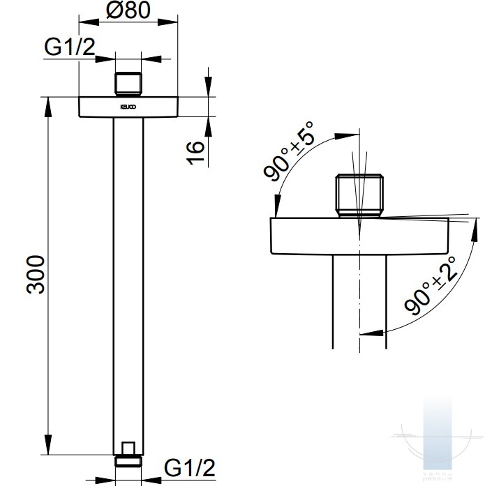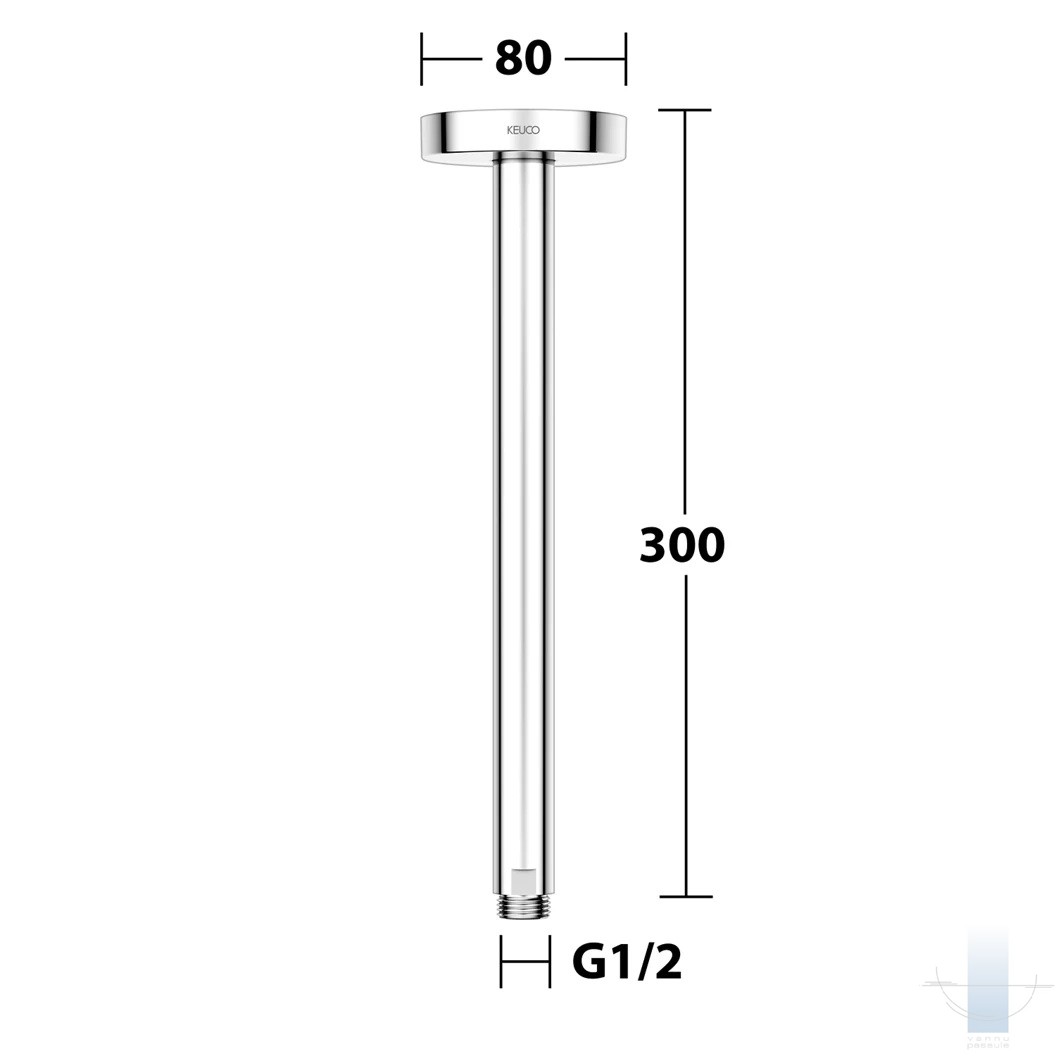 KEUCO Round Ceiling dušas galvas turētājs 300 mm, Hroms