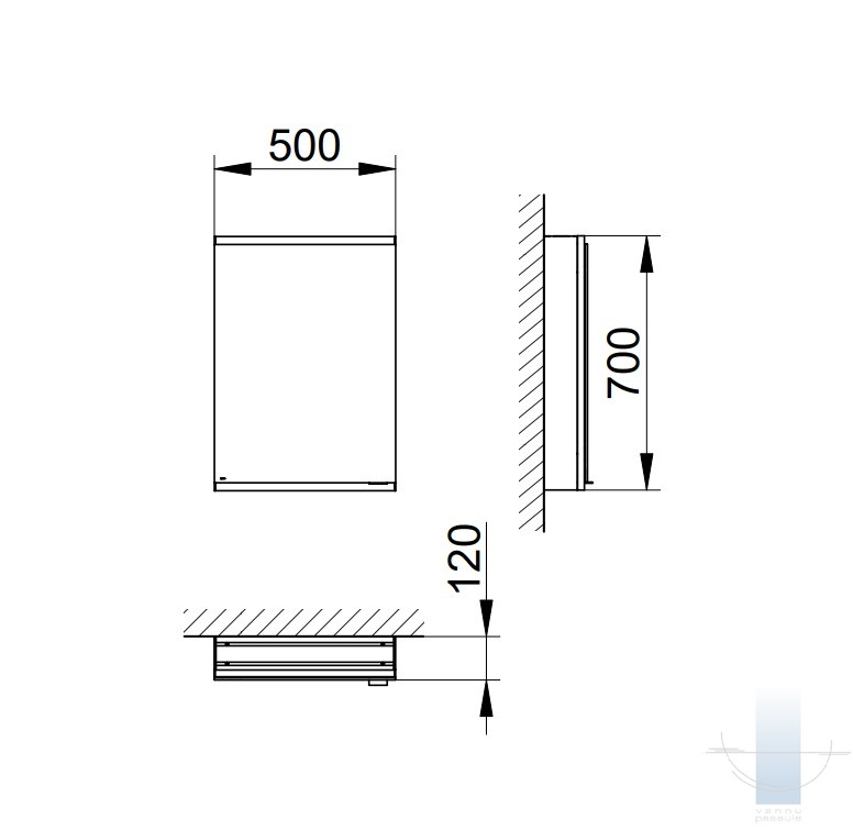 Piestiprināms pie sienas, 1 durvis, neapgaismots
