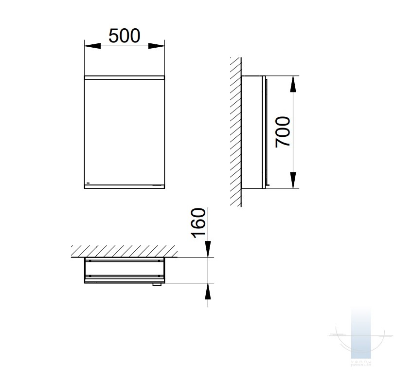 Piestiprināms pie sienas, 1 durvis, neapgaismots