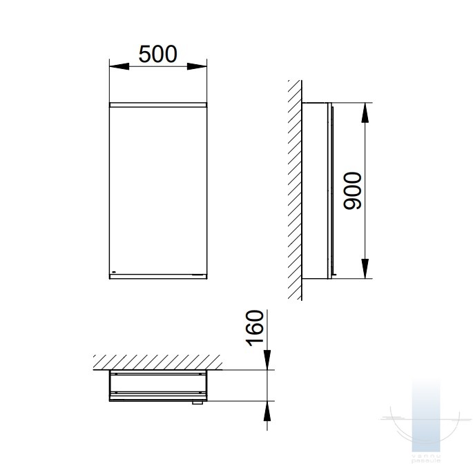 Piestiprināms pie sienas, 1 durvis, neapgaismots