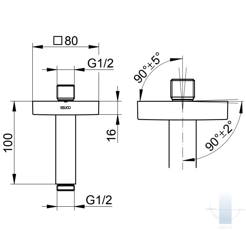 KEUCO Square Ceiling dušas galvas turētājs 100 mm, Hroms