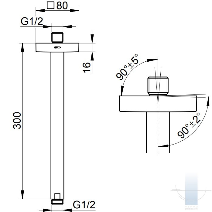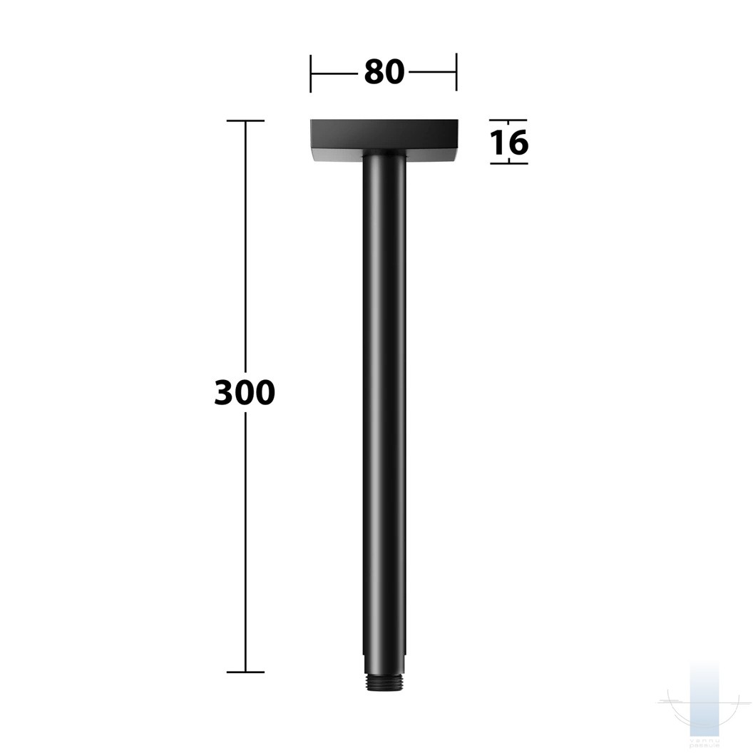 KEUCO Square Ceiling dušas galvas turētājs 300 mm, Melns matēts