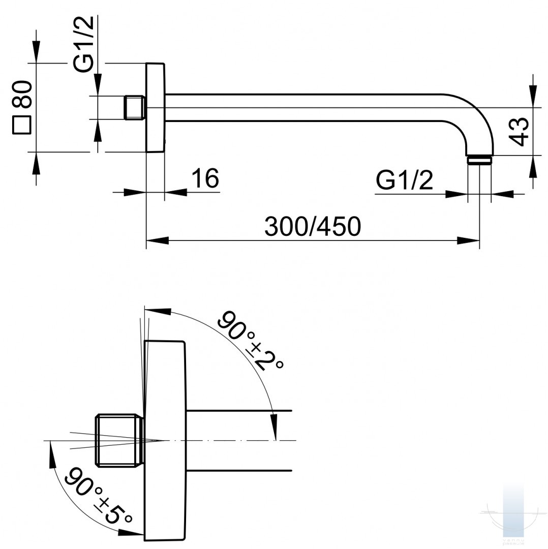KEUCO Square dušas galvas turētājs 300 mm, Hroms