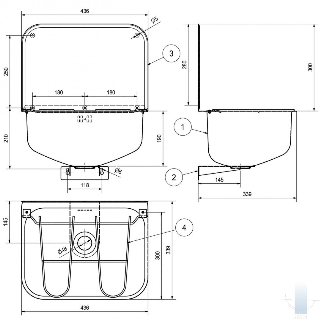 Komplektā iekļauta izlietne ar restēm,sieniņa un stiprinājumi.