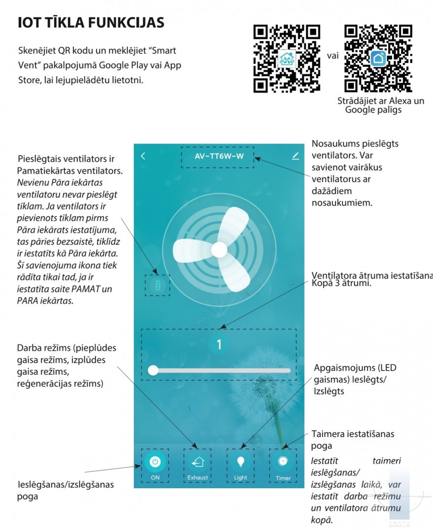 | Ventilators ar 3 ātrumiem: |