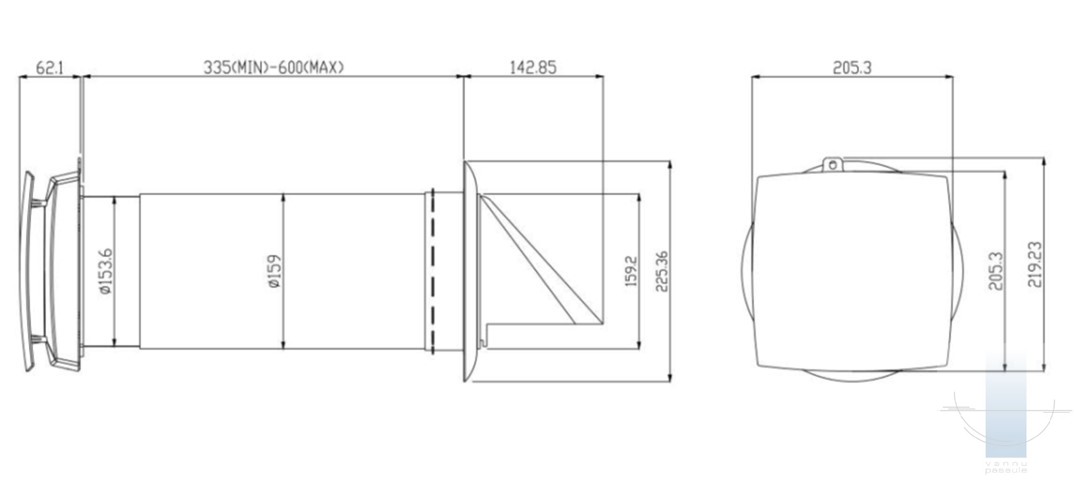 | Ārējās sienas biezums: | 335 - 600 mm | |||