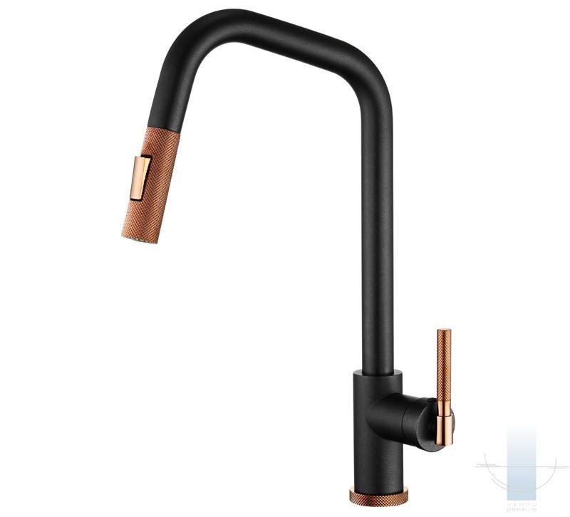 Mateno virtuves maisitājs ar izvelkamu dušu, Black metallic/copper
